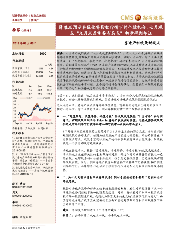 【海通证券】【20190908】房地产板块最新观点:降准或预示和强化非指数行情下的个股机会,七月观点“九月或是重要布局点”初步得到印证-3页