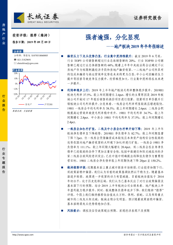 【长城证券】【20190909】地产板块2019年半年报综述:强者逾强,分化显现-16页