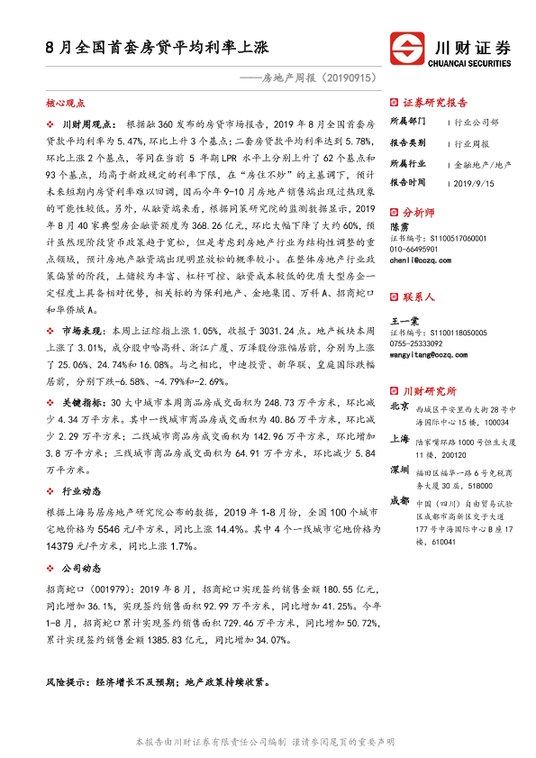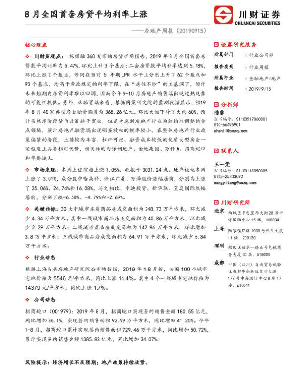 【川财证券】【20190915】8月全国首套房贷平均利率上涨-10页