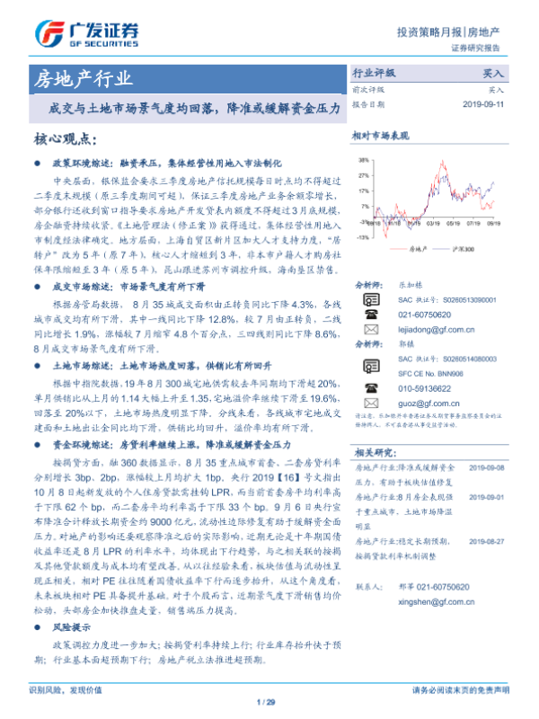 【广发证券】【20190911】成交与土地市场景气度均回落,降准或缓解资金压力-29页