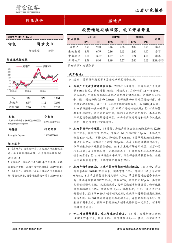 【财信证券】【20190916】投资增速延续回落,竣工开启修复-3页