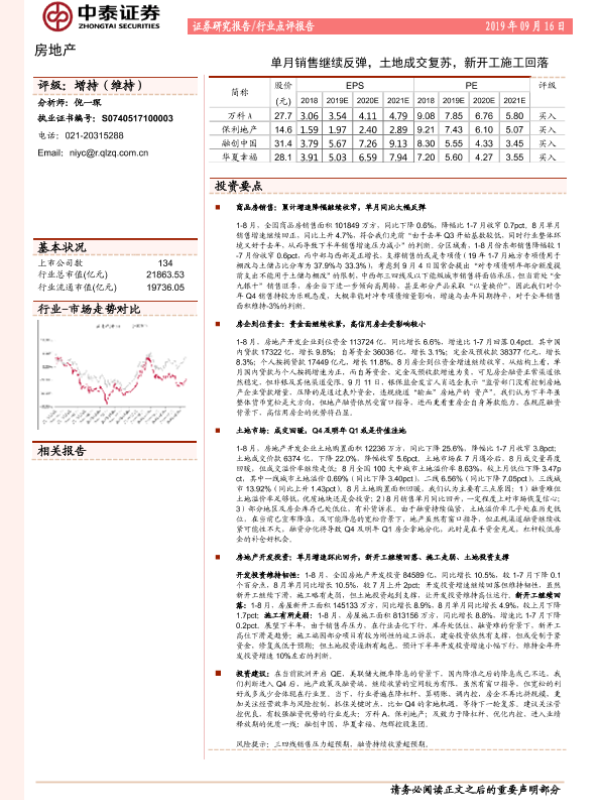【中泰证券】【20190916】单月销售继续反弹,土地成交复苏,新开工施工回落-2页
