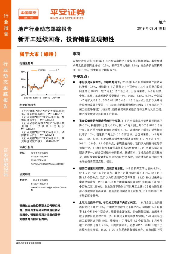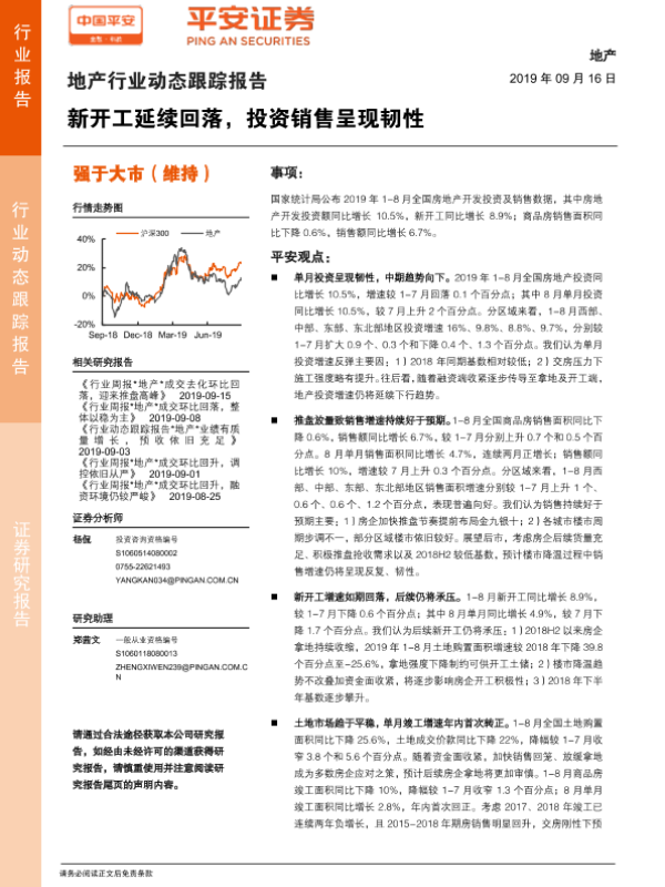 【平安证券】【20190916】地产行业动态跟踪报告:新开工延续回落,投资销售呈现韧性-15页