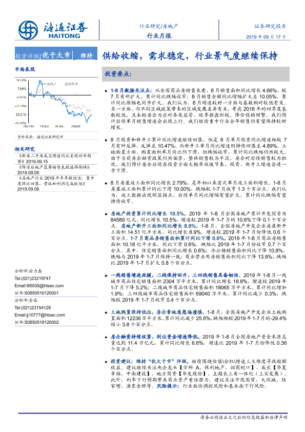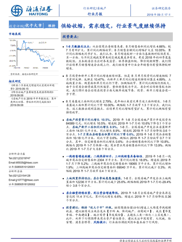 【海通证券】【20190917】房地产行业月报:供给收缩,需求稳定,行业景气度继续保持-11页