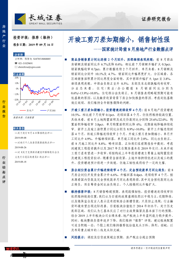 【长城证券】【20190916】国家统计局前8月房地产行业数据点评:开竣工剪刀差如期缩小,销售韧性强-8页