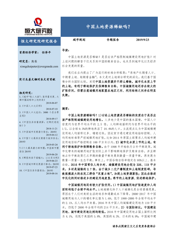 【恒大研究院】【20190923】中国土地资源稀缺吗?-21页
