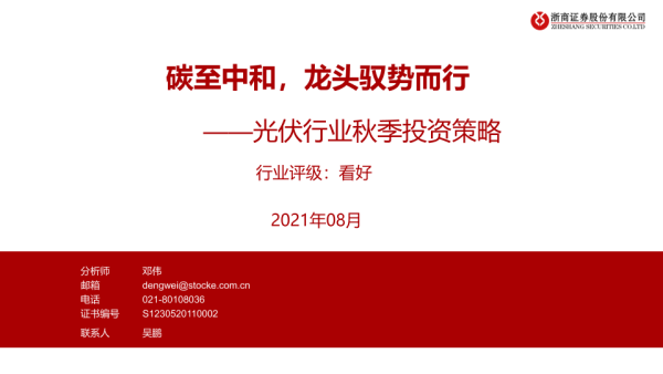 【浙商证券】【20210823】光伏行业秋季投资策略:碳至中和,龙头驭势而行-35页
