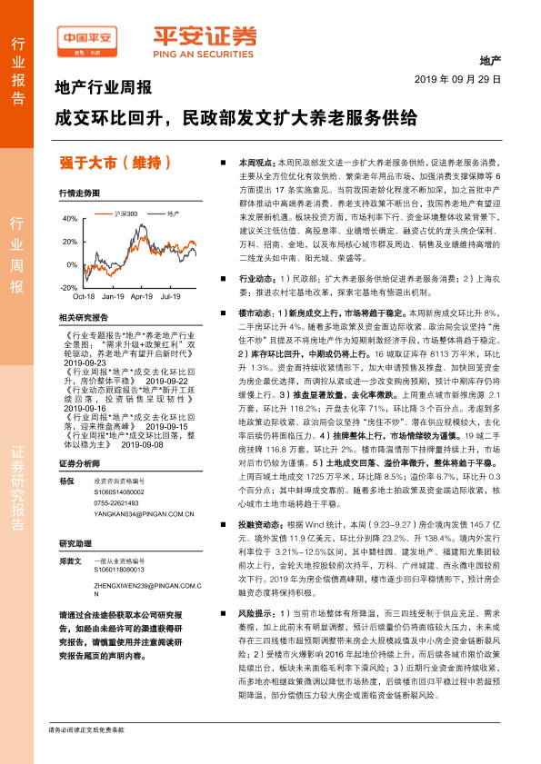 【平安证券】【20190929】地产行业周报:成交环比回升,民政部发文扩大养老服务供给-5页