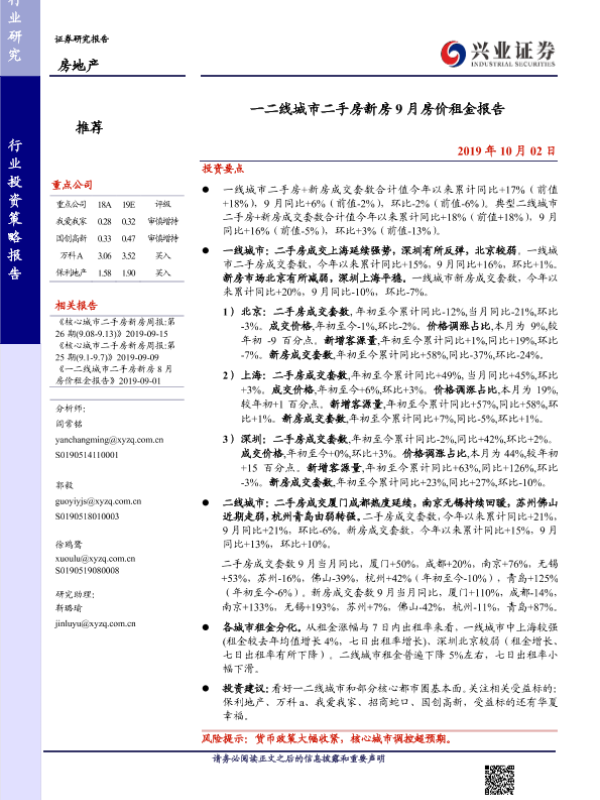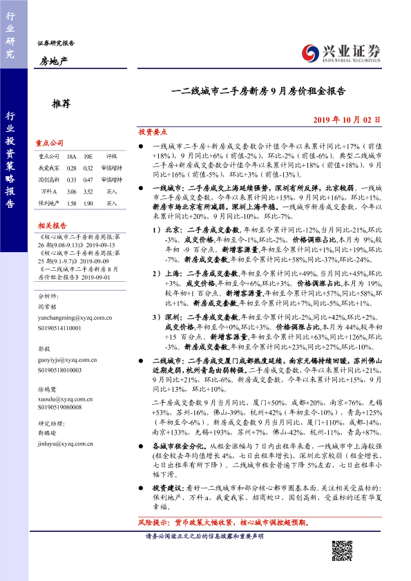 【兴业证券】【20191002】一二线城市二手房新房9月房价租金报告-16页