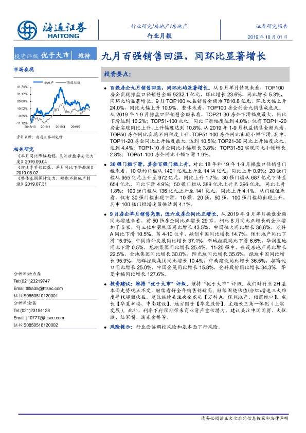 【海通证券】【20191001】九月百强销售回温,同环比显著增长-10页