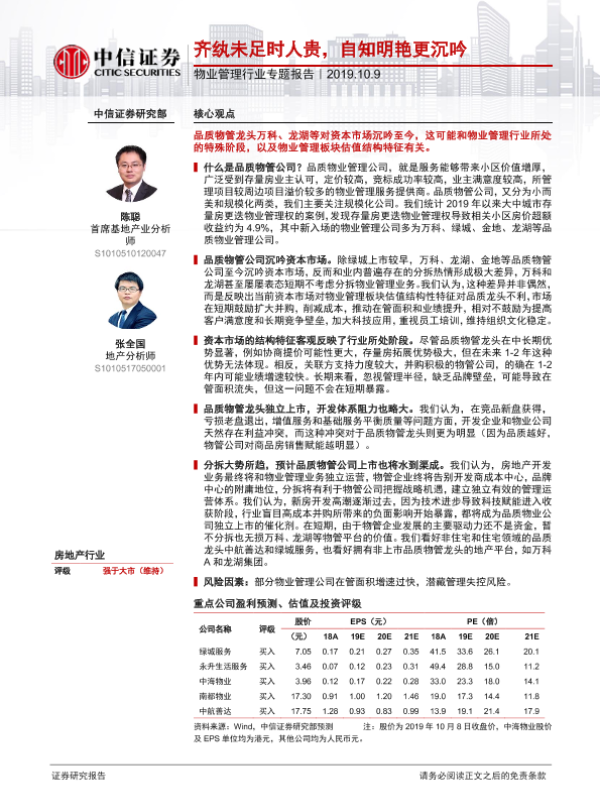 品质物管 房地产 物业管理 行业分析 资本市场