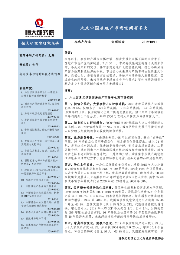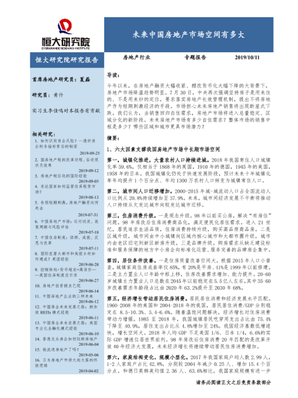 【恒大研究院】【20191011】未来中国房地产市场空间有多大-29页