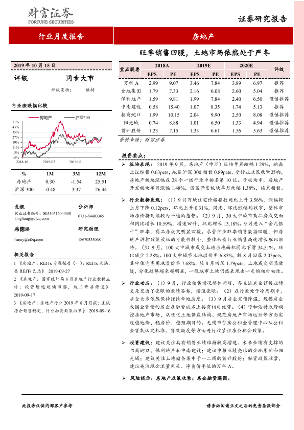 【财信证券】【20191015】房地产行业月度报告:旺季销售回暖,土地市场依然处于严冬-13页