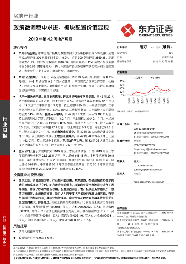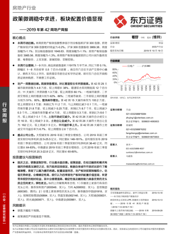 【东方证券】【20191019】2019年第42周地产周报:政策微调稳中求进,板块配置价值显现-17页