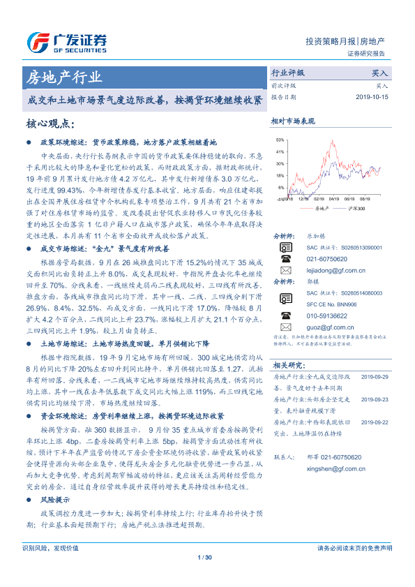 【广发证券】【20191015】成交和土地市场景气度边际改善,按揭贷环境继续收紧-30页