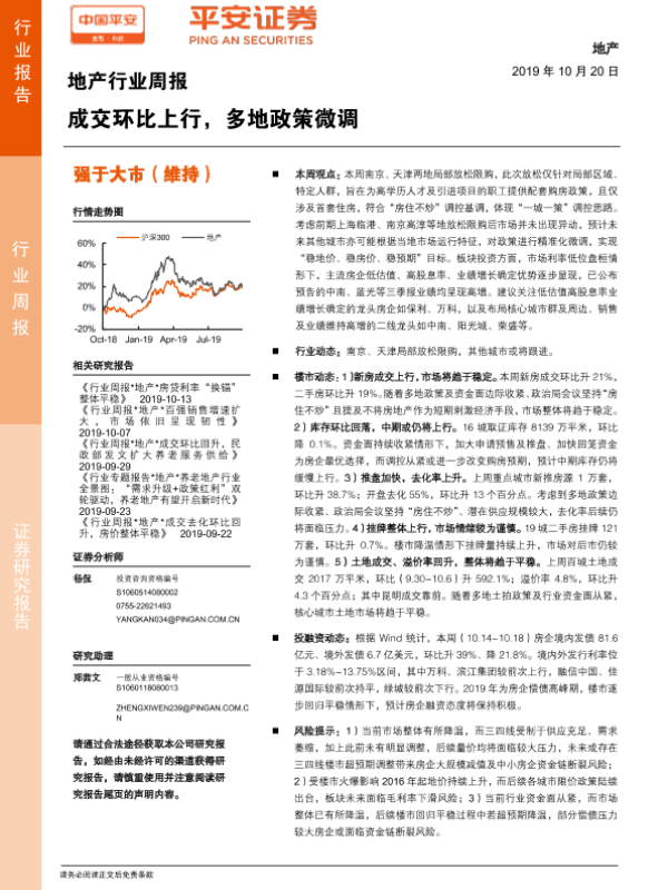 【平安证券】【20191020】地产行业周报:成交环比上行,多地政策微调-5页
