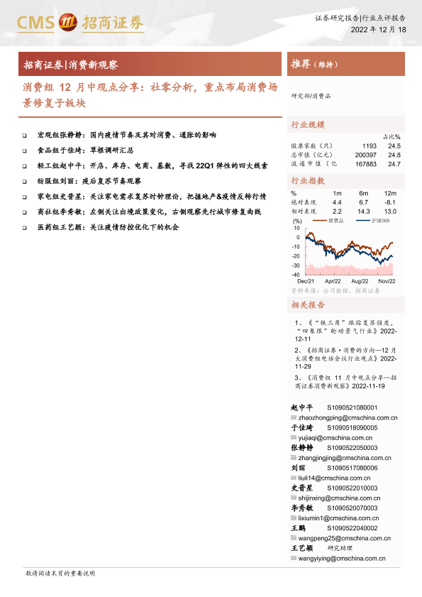 【海通证券】【20221218】消费品行业消费新观察:消费组12月中观点分享,社零分析,重点布局消费场景修复子板块-15页