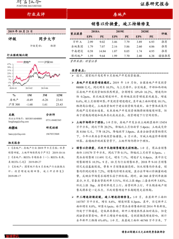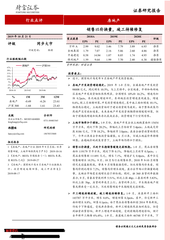 【财信证券】【20191021】房地产行业点评:销售以价换量,竣工持续修复-3页
