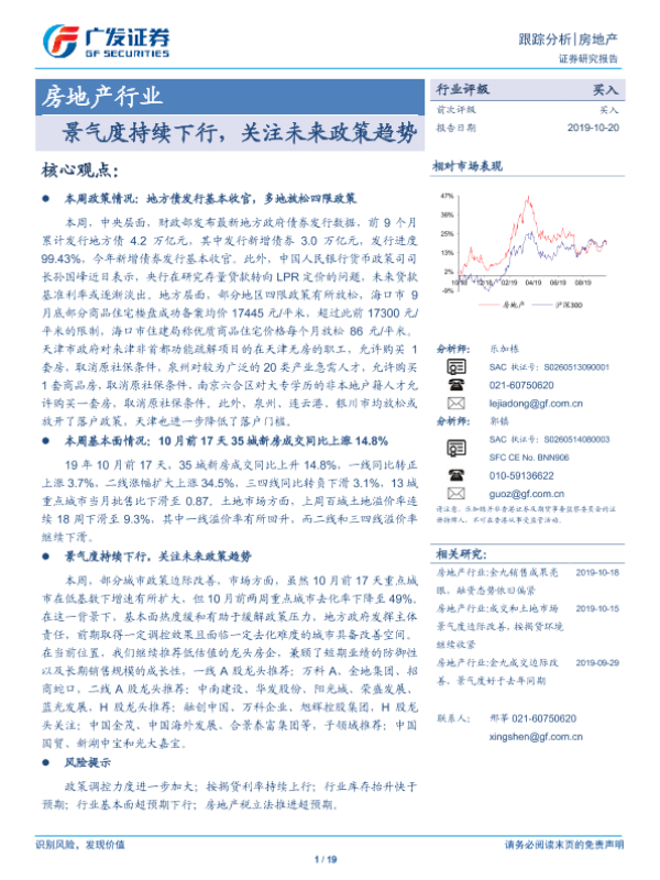【广发证券】【20191020】房地产行业跟踪分析:景气度持续下行,关注未来政策趋势-19页