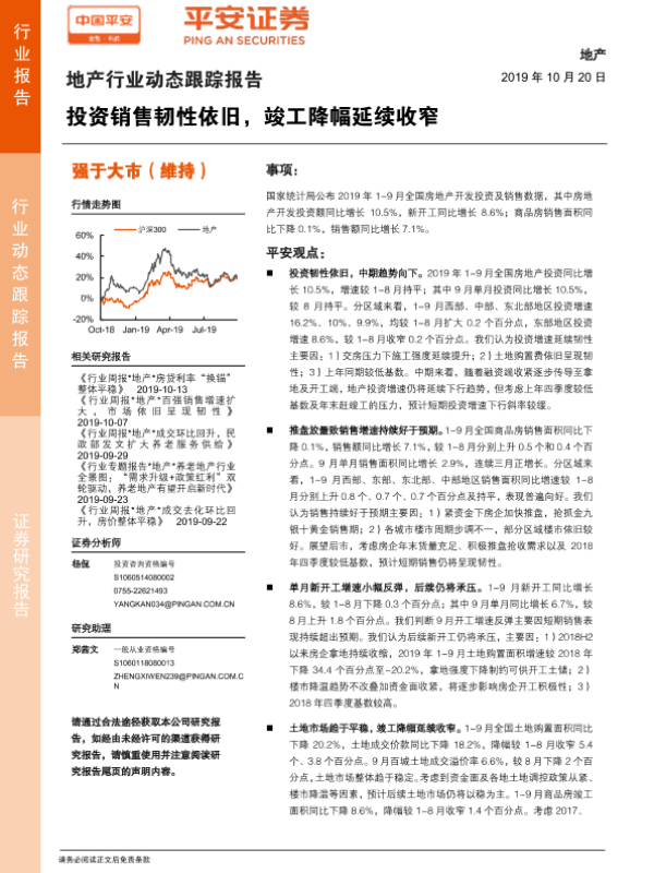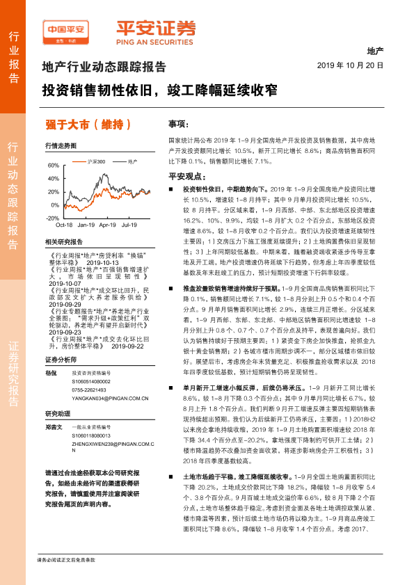 【平安证券】【20191020】地产行业动态跟踪报告:投资销售韧性依旧,竣工降幅延续收窄-15页