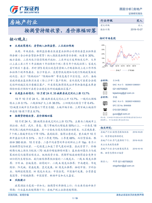 【广发证券】【20191027】房地产行业跟踪分析:按揭贷持续收紧,房价涨幅回落-19页