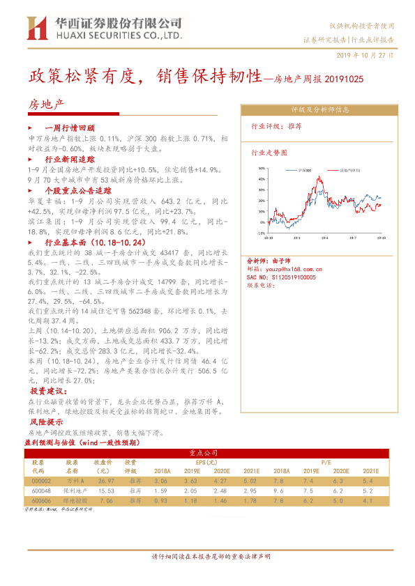 【华西证券】【20191027】政策松紧有度,销售保持韧性—房地产周报-12页