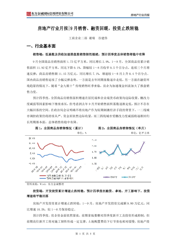【东方金诚】【20191028】9月销售、融资回暖,投资止跌转稳-5页