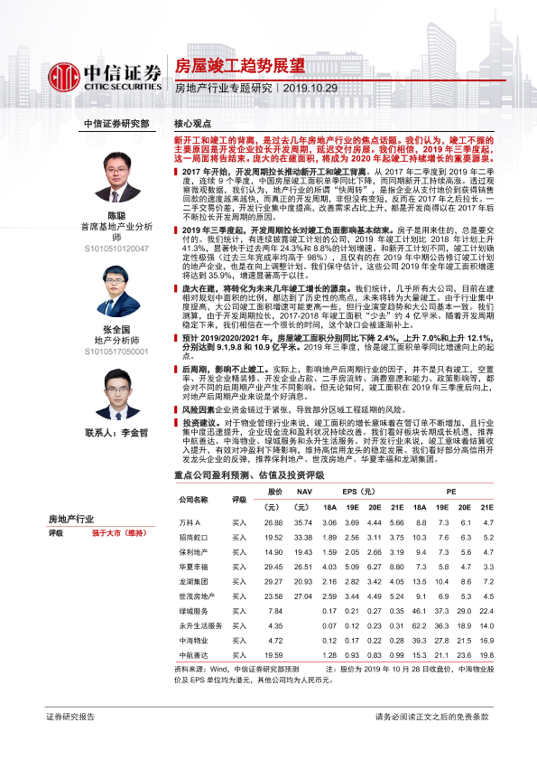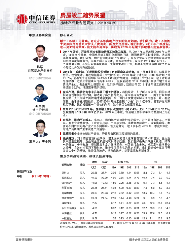 【中信证券】【20191029】房屋竣工趋势展望-12页