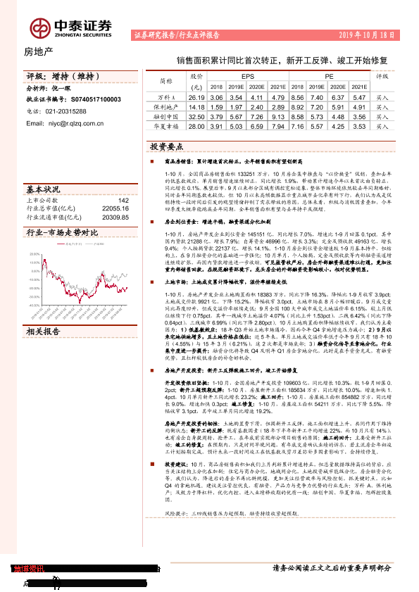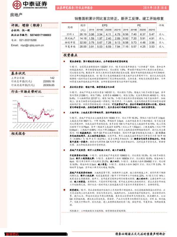 【中泰证券】【20191018】房地产:销售面积累计同比首次转正,新开工反弹、竣工开始修复-2页