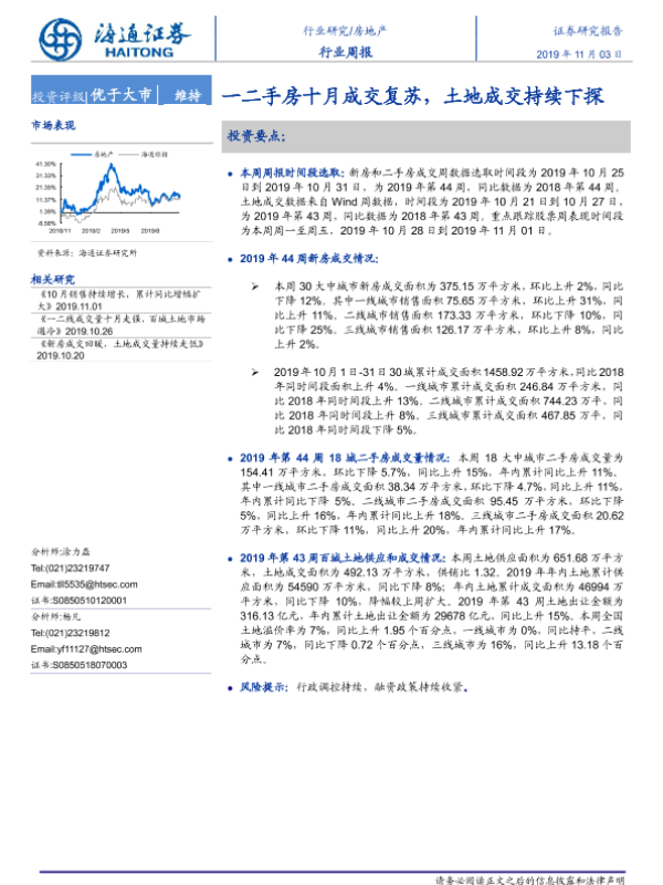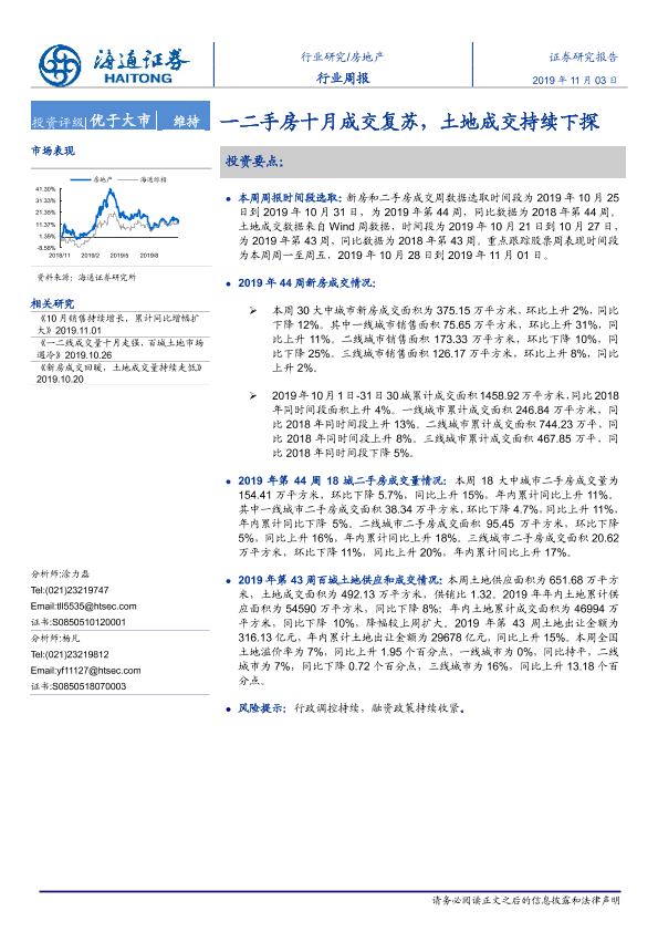 【海通证券】【20191103】一二手房十月成交复苏,土地成交持续下探-6页