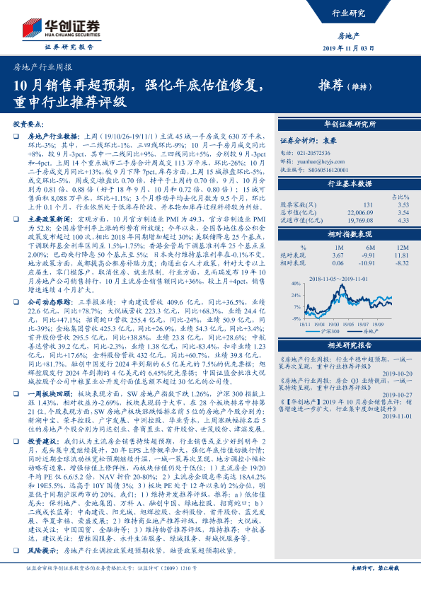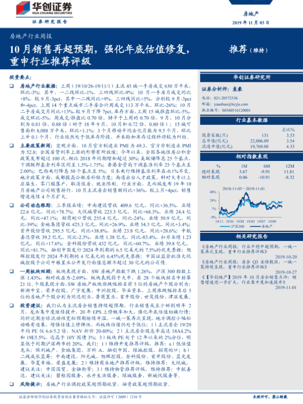 【华创证券】【20191103】房地产行业周报:10月销售再超预期,强化年底估值修复-24页