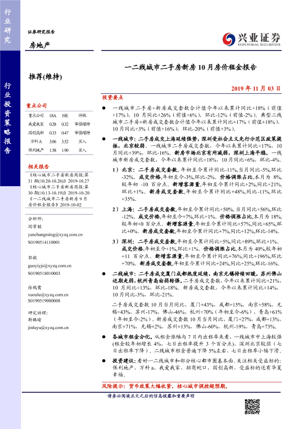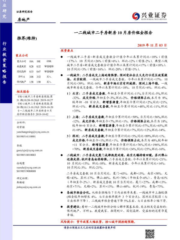 【兴业证券】【20191103】一二线城市二手房新房10月房价租金报告-16页