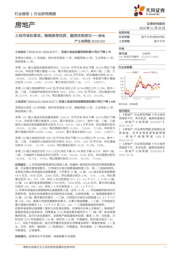 【天风证券】【20191103】土地市场秋意浓,继续推荐优质、融资优势房企-8页
