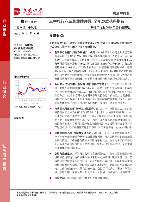 【东莞证券】【20191105】房地产行业2019年三季报综述:三季报行业结算业绩理想 全年继续值得期待-10页