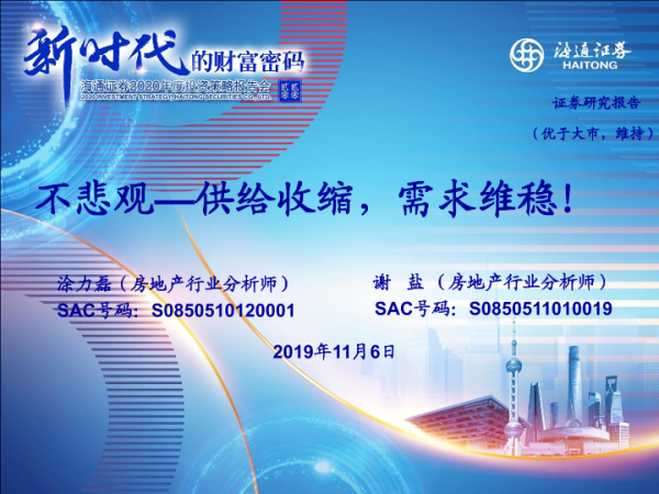 【海通证券】【20191106】房地产行业2020年策略深度报告:不悲观-供给收缩,需求维稳!-21页