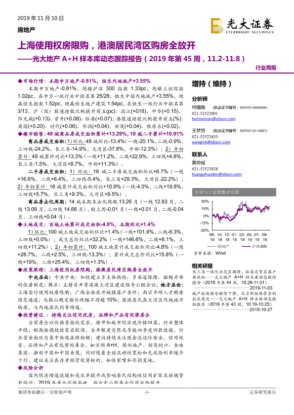 【光大证券】【20191110】光大地产A+H样本库动态跟踪报告:上海使用权房限购,港澳居民湾区购房全放开-14页