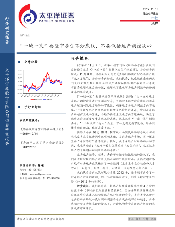 【太平洋证券】【20191110】地产行业点评报告:“一城一策”要坚守房住不炒底线,不要低估地产调控决心-5页