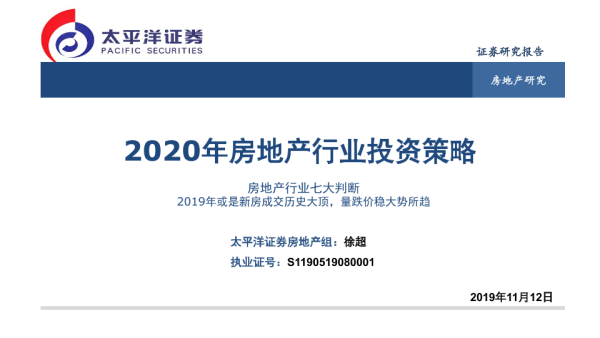 【太平洋证券】【20191112】2020年房地产行业投资策略:房地产行业七大判断-12页