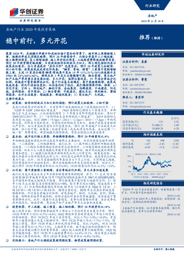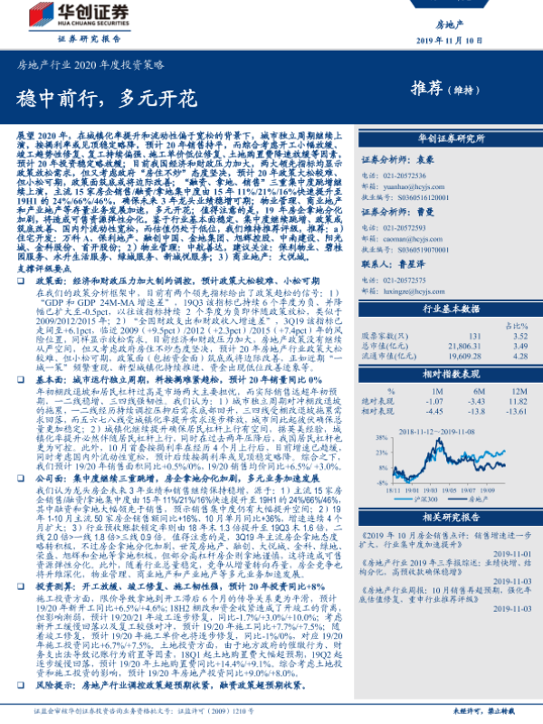 【华创证券】【20191110】房地产行业2020年度投资策略:稳中前行,多元开花-134页