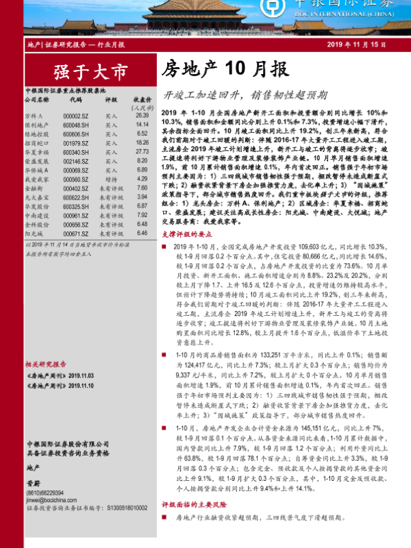 【中银证券】【20191115】房地产10月报:开竣工加速回升,销售韧性超预期-17页