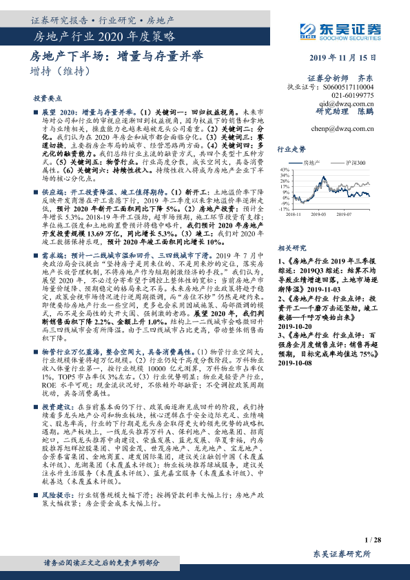 【东吴证券】【20191115】房地产行业2020年度策略:房地产下半场:增量与存量并举-28页