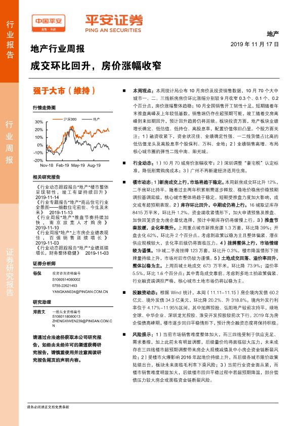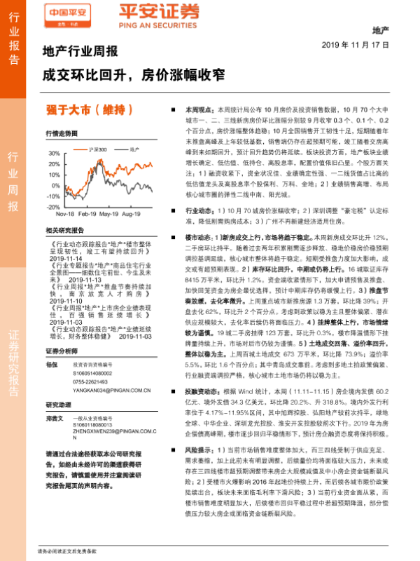 【平安证券】【20191117】地产行业周报:成交环比回升,房价涨幅收窄-6页
