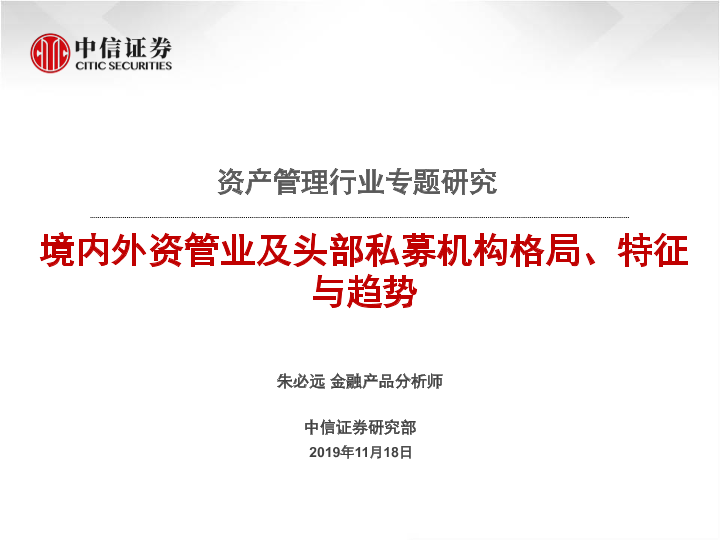 【中信证券】【20191118】资产管理行业专题研究:境内外资管业及头部私募机构格局、特征与趋势-48页