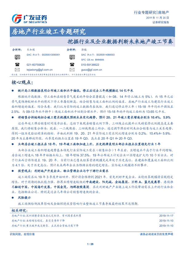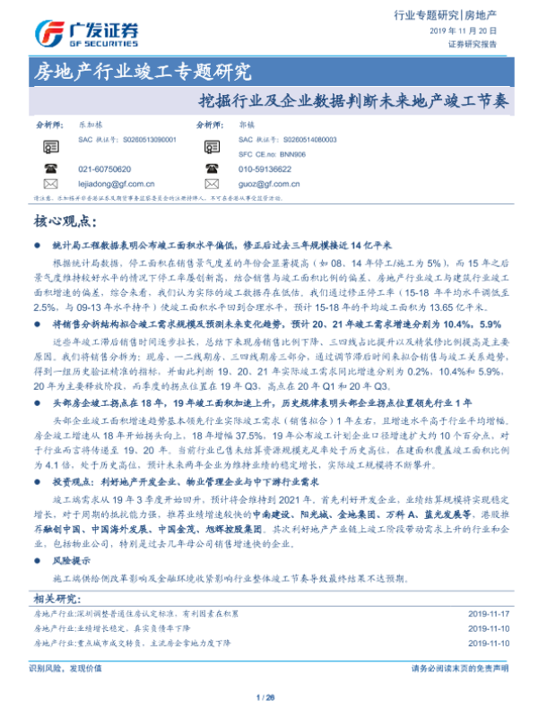 【广发证券】【20191120】房地产行业竣工专题研究:挖掘行业及企业数据判断未来地产竣工节奏-26页