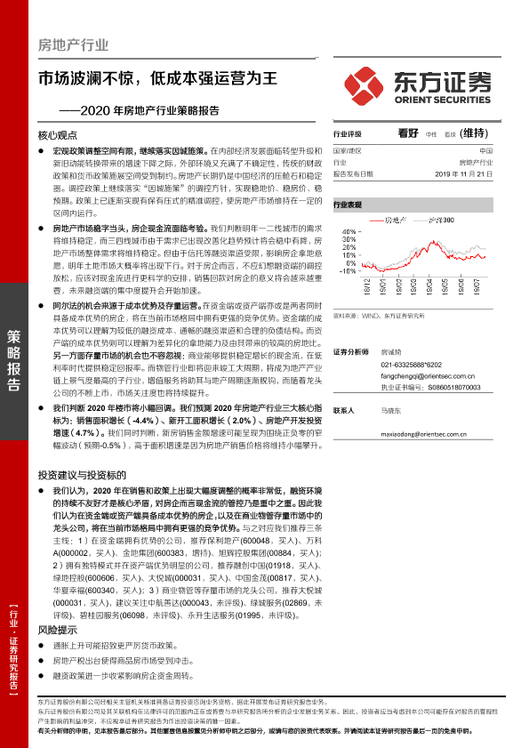 【东方证券】【20191121】2020年房地产行业策略报告:市场波澜不惊,低成本强运营为王-30页