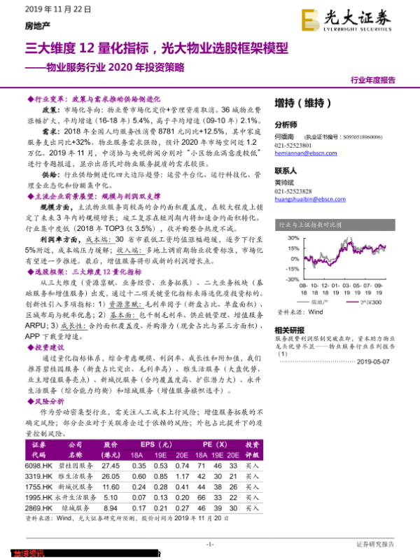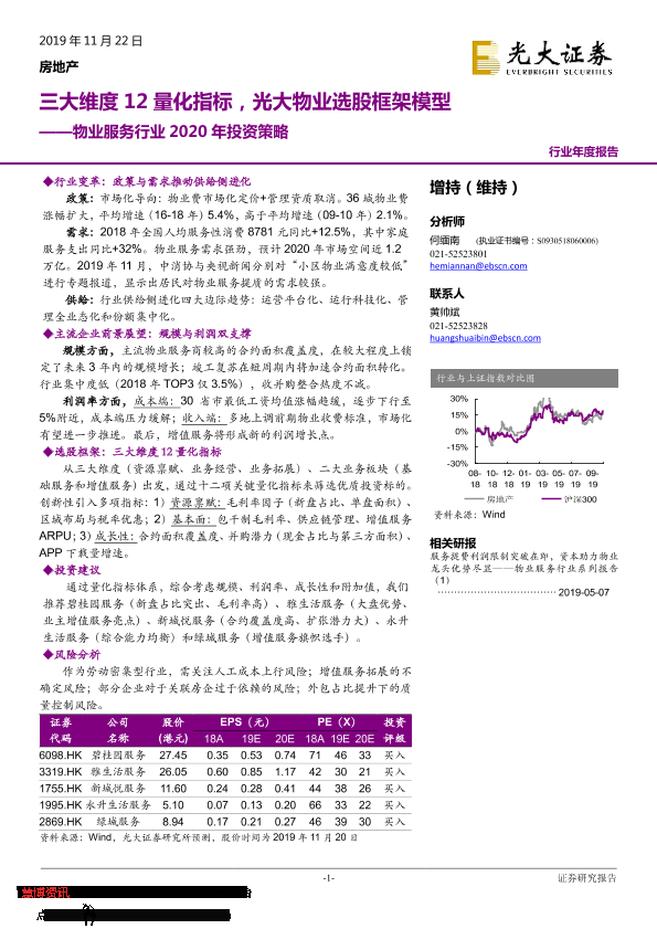 【光大证券】【20191122】物业服务行业2020年投资策略:三大维度12量化指标,光大物业选股框架模型-30页