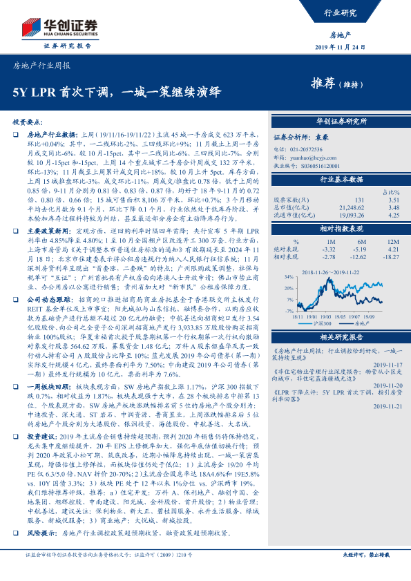 【华创证券】【20191124】房地产行业周报:5YLPR首次下调,一城一策继续演绎-21页