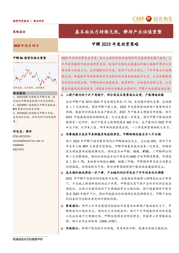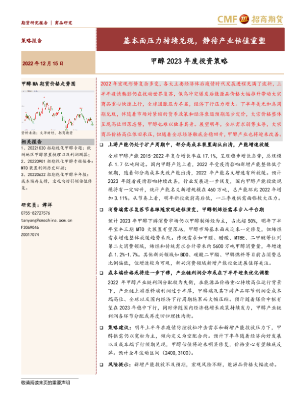 【招商期货】【20221215】甲醇2023年度投资策略:基本面压力持续兑现,静待产业估值重塑-28页
