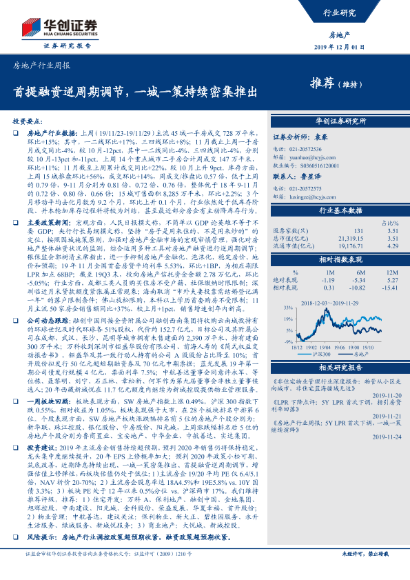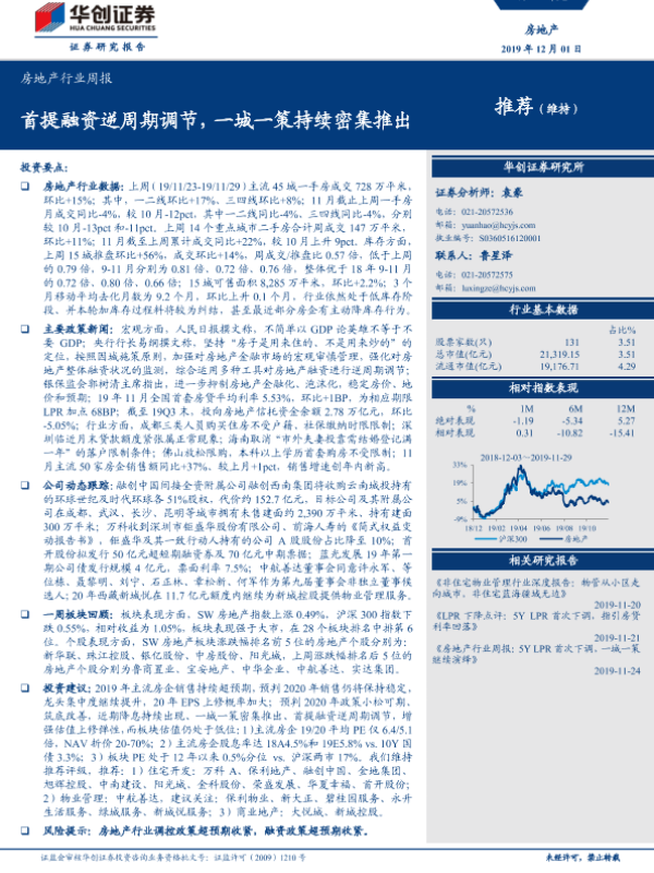 【华创证券】【20191201】房地产行业周报:首提融资逆周期调节,一城一策持续密集推出-21页