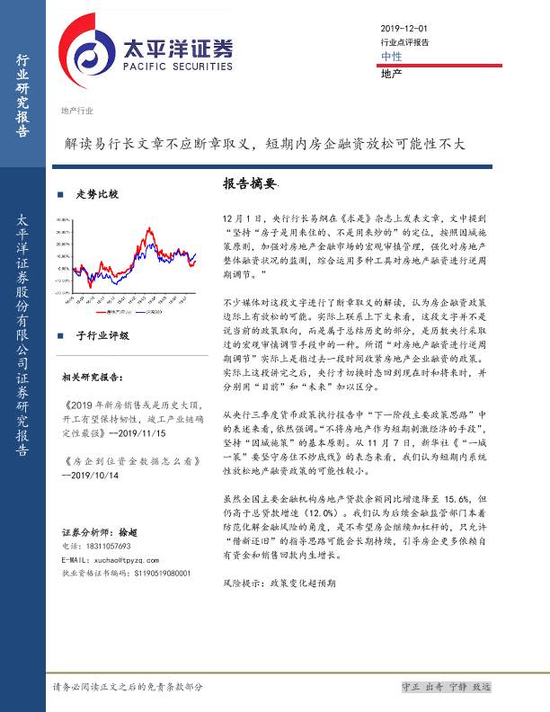 【太平洋证券】【20191201】解读易行长文章不应断章取义,短期内房企融资放松可能性不大-5页